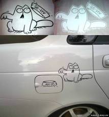 Продам наклейки на машину с царапающим котом Саймона. Наклейку легко клеить и так же, если нужно, можно легко убрать....